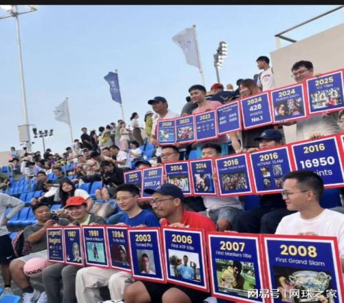 一眾球迷們將德約幾乎每年當(dāng)中的重要時刻都選取出一個,制成海報帶到了賽場上。那么都有哪些呢?讓我們一探究竟。