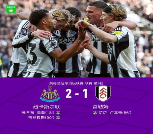 北京時間10月25日,英格蘭足球超級聯(lián)賽第9輪,紐卡斯?fàn)柭?lián)坐鎮(zhèn)主場迎戰(zhàn)富勒姆。比賽中,雅各布-墨菲率先為紐卡斯?fàn)柭?lián)打破僵局,取得領(lǐng)先。隨后,薩薩-盧基奇為富勒姆扳平比分,雙方一度陷入膠著。臨近比賽結(jié)束,吉馬良斯挺身而出,攻入制勝進球。最終,紐卡斯?fàn)柭?lián)以2比1戰(zhàn)勝富勒姆。