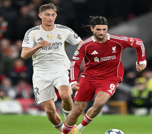 隨著主裁判一聲哨響,兩支球隊就擺開架勢對攻,第10分鐘維爾茨前場積極搶斷后回傳,麥卡利斯特大禁區(qū)前沿完成一腳遠射,但皮球沒有能夠命中目標(biāo),8分鐘之后,以22歲128天超越卡西成為歐冠歷史最年輕50場先生的貝林厄姆,為姆巴佩做球,可惜法國利劍一腳高射炮踢飛了皮球。